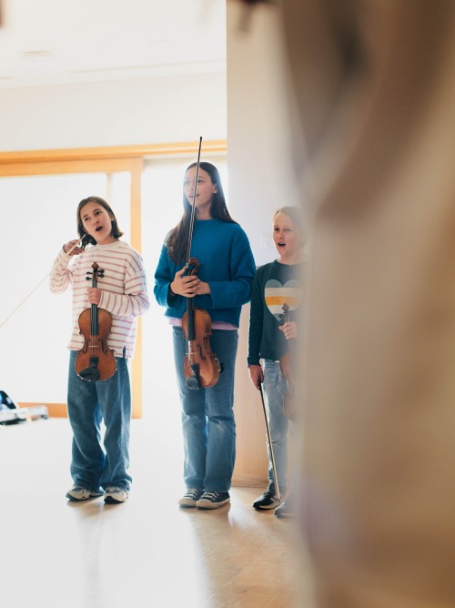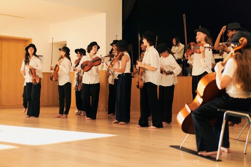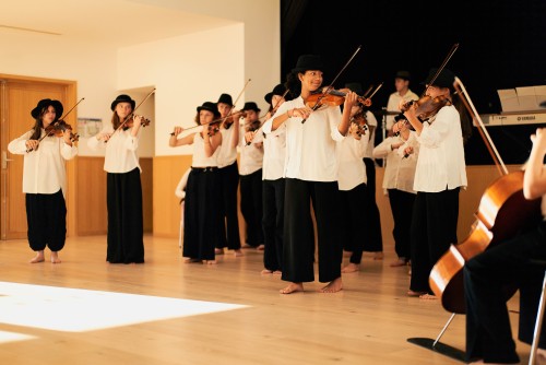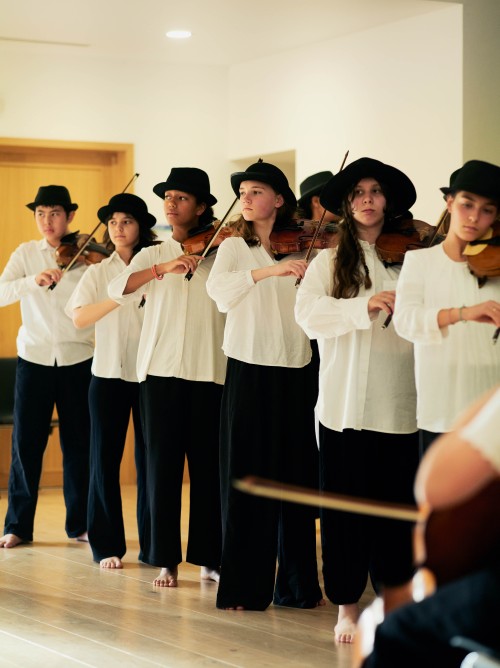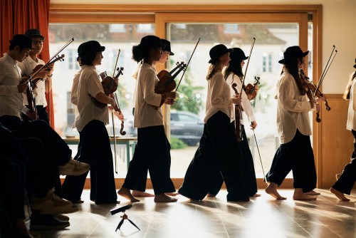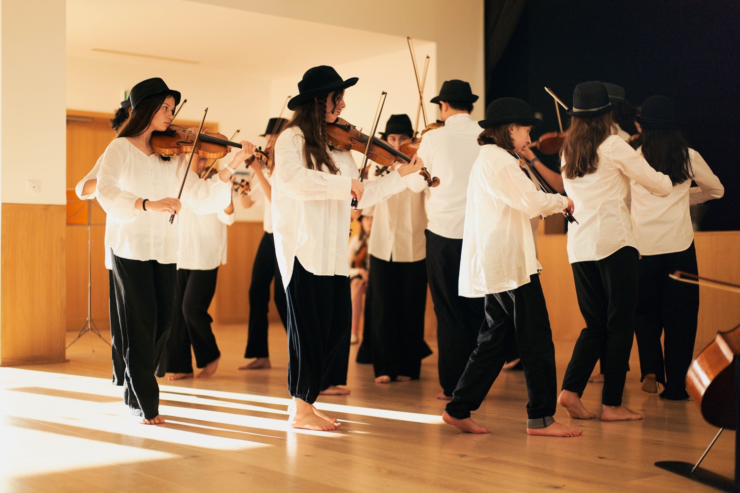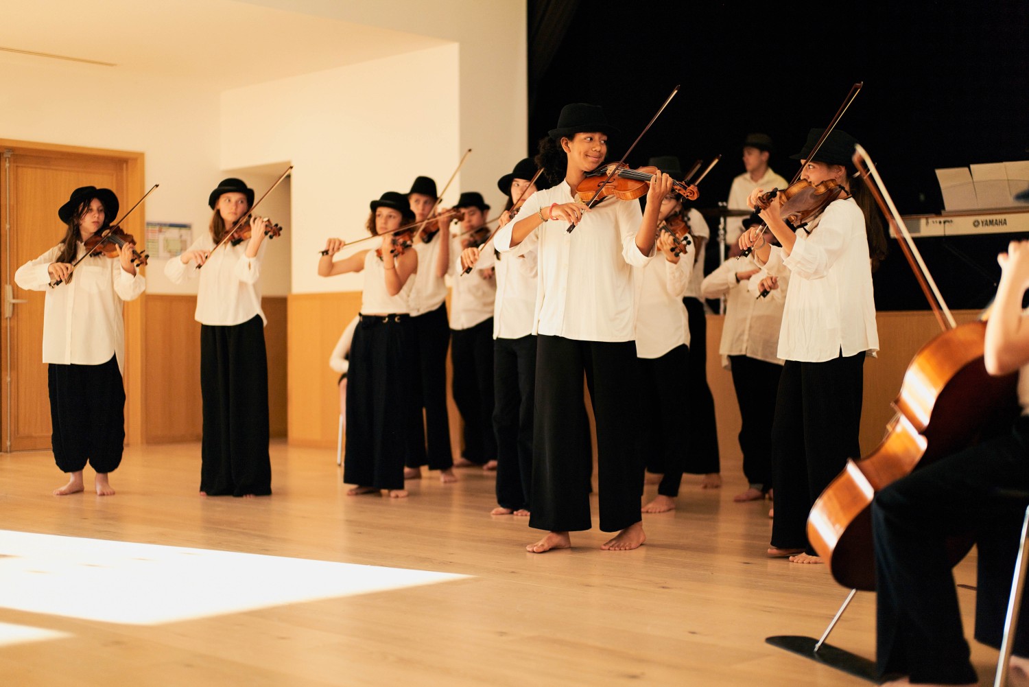 «Violons Dansants» is an original pedagogical approach developed by Tina Strinning. The aim of this approach is to use dance as a didactic, technical and musical tool for learning the instrument. It is about performing simple dance steps while playing the violin, understanding the surrounding space and structuring the music within it. By focusing on other resistances, tensions related to the difficulties of the instrument would also tend to disappear. «Using the whole body, physiologically and neurologically, seems natural to me in order to develop the child’s global expression and personality,» explains Tina Strinning.